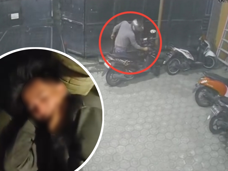Dari rekaman CCTV, pria bertubuh kurus itu diam diam masuk gerbang kos. Lalu periab tersebut terlihat mengambil sebuah helm lalu memakainya. Nampaknya, pria tersebut berusaha menyalakan sepeda motor jenis Honda Beat street, yang saat itu terparkir di halaman kost.